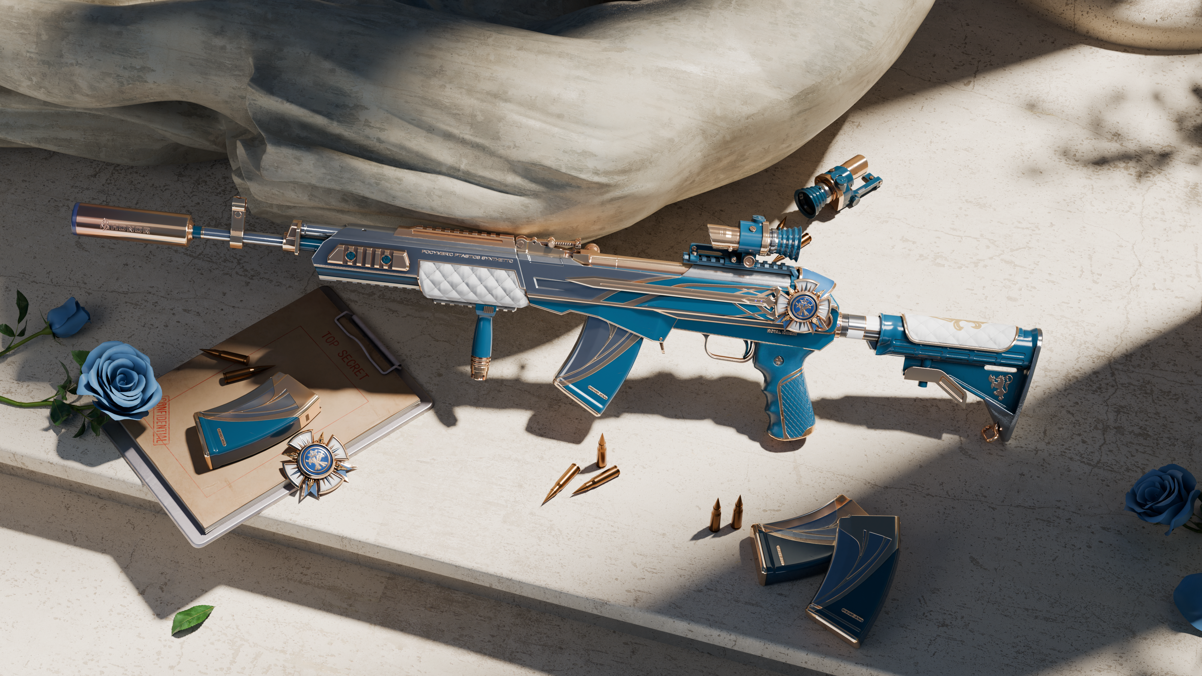 Reward Overview: QBZ-95 - Celestial Guardian, Avatar - Emergency Landing, Calling Card - Competitive Match, Gesture - Hot Tea, Please, SCAR-H - National Flavor, Name Card - Iron Grim, Spray Paint - Iron Grim, Vyron - Iron Grim