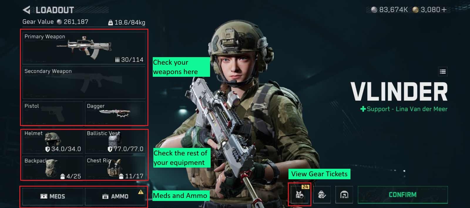 Gear tickets give you a free kit (Armour, Weapons, Ammo, Medicines). Use them as much as you want!