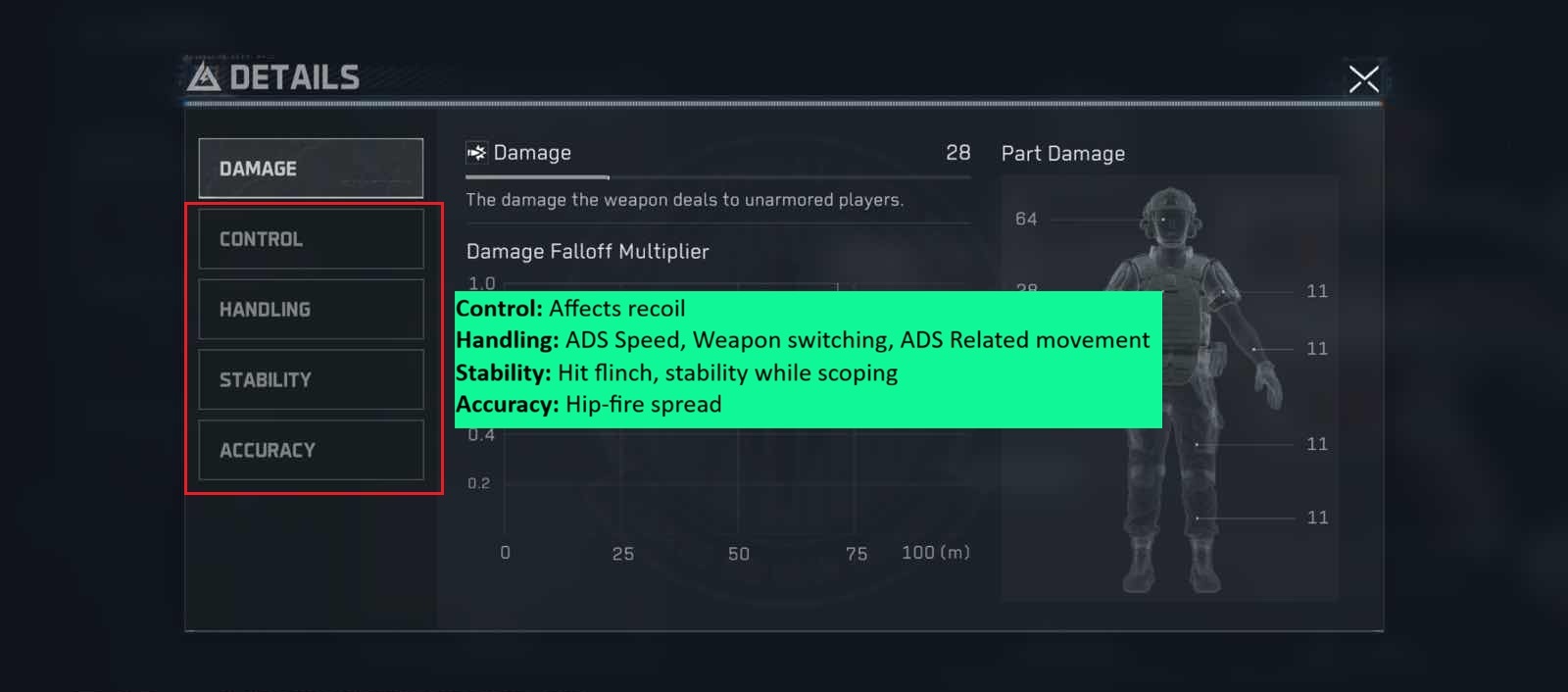 The image below shows how each aspect affects your weapon.