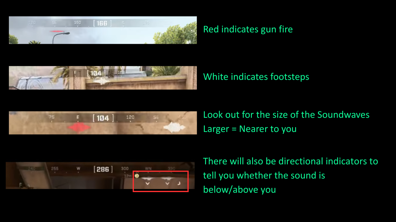 On Mobile, there are sound indicators below your compass. Pay attention to the compass and take note of sounds.