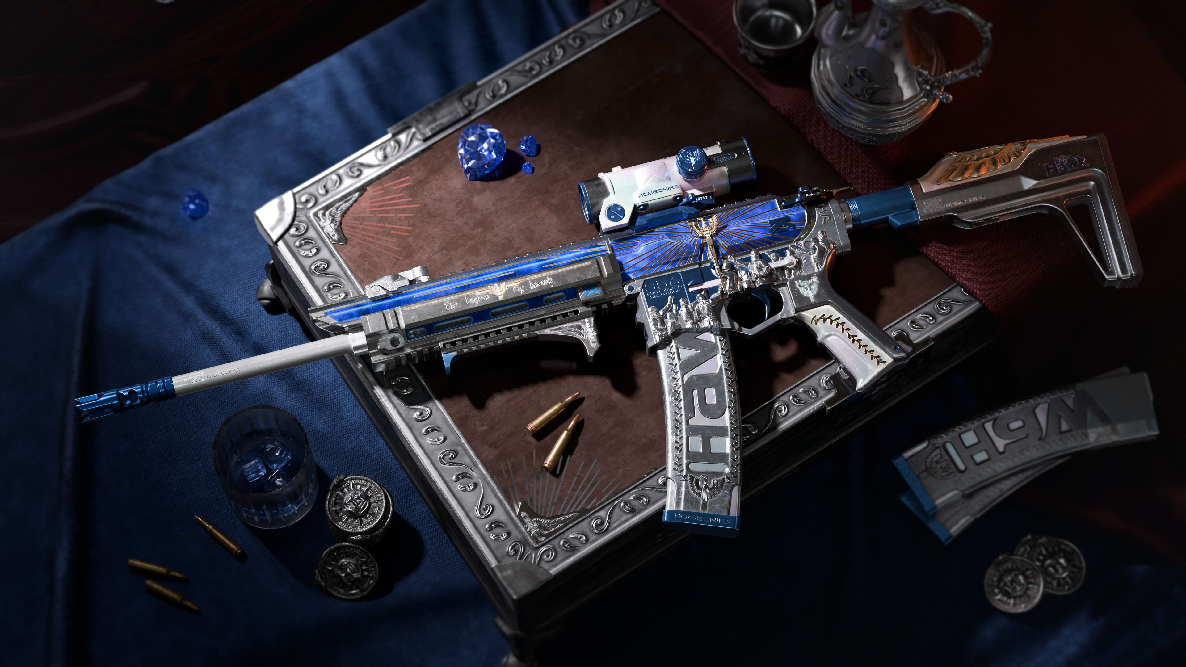 Contenido del paquete: Aspectos de arma de la serie Legión alada (Fusil de asalto K416, Fusil de asalto SG552, Desert Eagle), Avatar - Legión alada, Tarjeta de identificación - Legión alada, Aerosol - Legión alada, Amuleto - Legión alada.