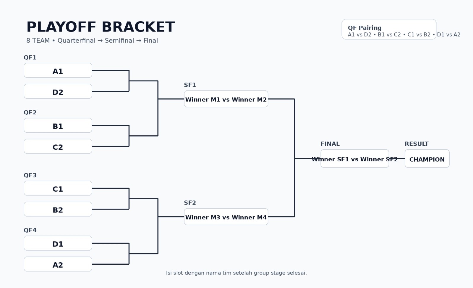 Format pertandingan: BO2 (Group Stage) & BO3 (Quarter Final - Grand Final)