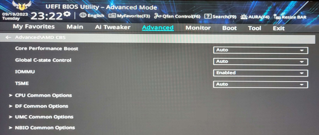 3. Di bawah AMD CBS – NBIO Common Options, ubah IOMMU dari “Disabled/AUTO” menjadi “Enabled”.