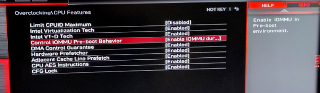 4. Atur Control IOMMU Pre-boot Behavior menjadi “Enable IOMMU during boot”; jika tidak ada opsi “Enable IOMMU during boot”, silakan pilih Enable IOMMU