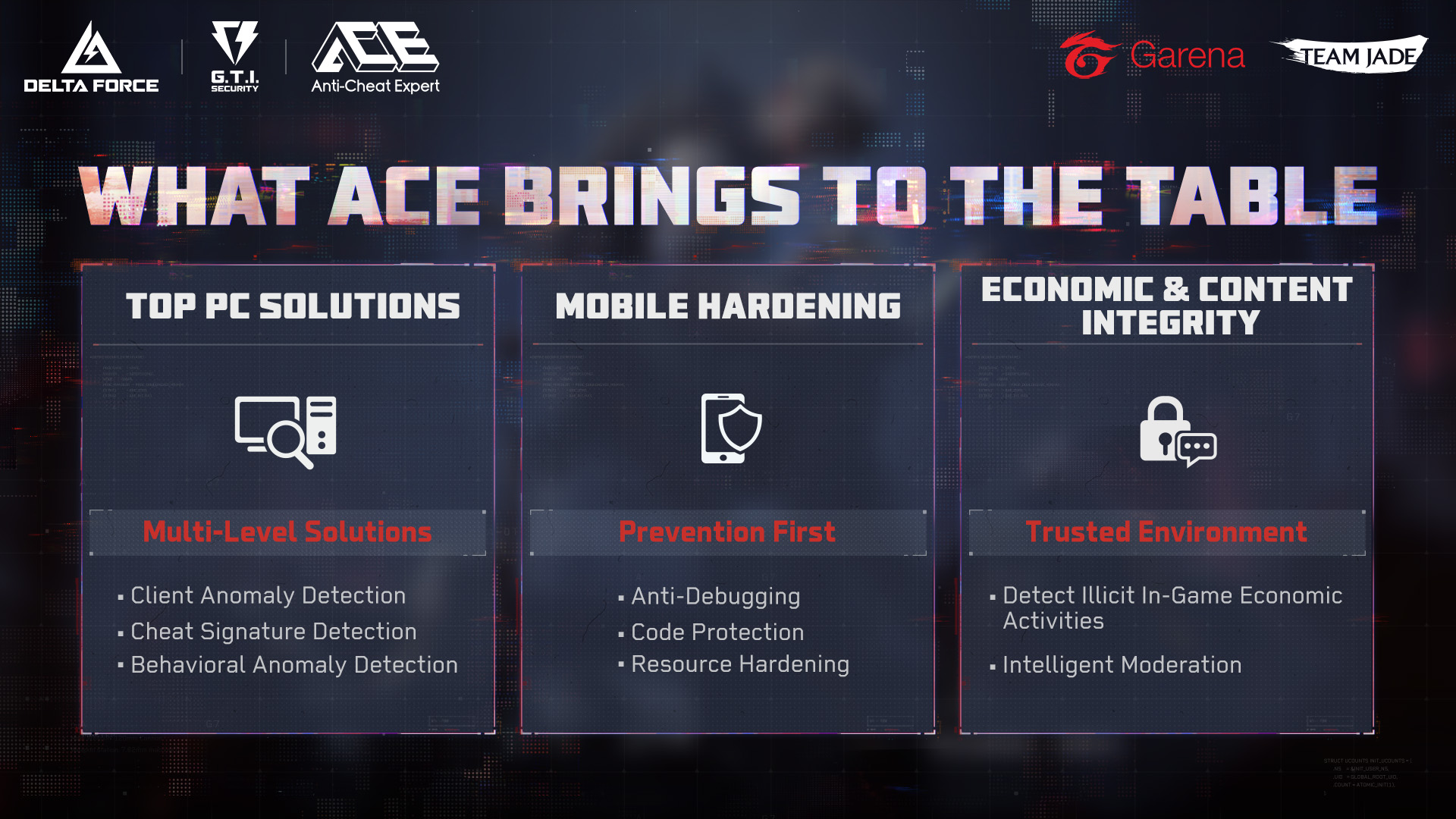 Bayangkan ACE sebagai unit overwatch elite. Mereka tidak hanya mencari satu jenis ancaman; mereka menawarkan sistem keamanan komprehensif “one-stop” yang dirancang untuk melindungi lingkungan game dari bawah ke atas. Dengan bermitra dengan ACE, kami memanfaatkan 20 tahun data dan teknologi khusus yang didedikasikan untuk satu hal: menjaga fair playing field.