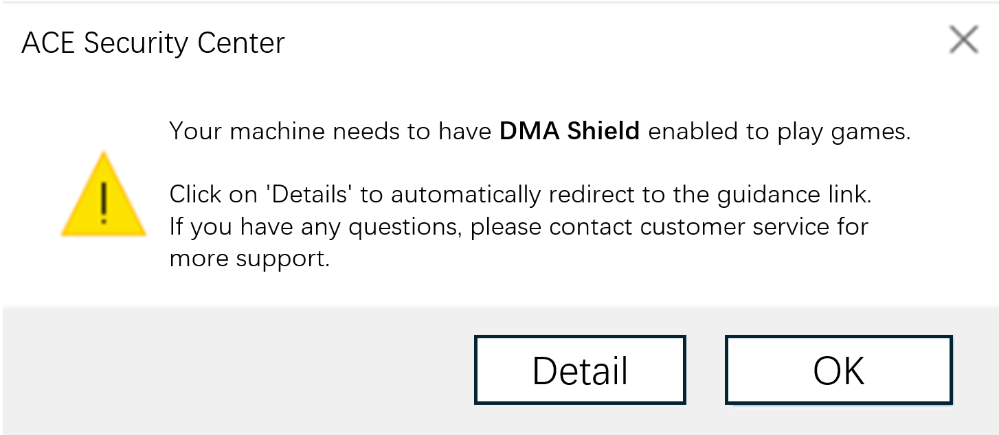 Esta é a função de proteção de hardware DMA atualizada recentemente lançada pela A.C.E. Com base no recurso de segurança existente do Windows “Proteção DMA do Kernel”, ela aprimora ainda mais a proteção contra hardware externo anormal, impedindo o acesso não autorizado à memória por dispositivos de hardware externos e evitando ataques DMA; protegendo assim sua conta contra exploração maliciosa.