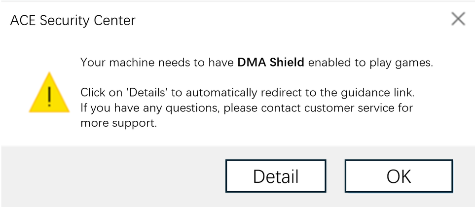 นี่คือฟังก์ชันป้องกันฮาร์ดแวร์ DMA รุ่นอัปเกรดใหม่ที่เปิดตัวโดย A.C.E. โดยพัฒนาต่อยอดจากฟีเจอร์ความปลอดภัยของ Windows ที่มีอยู่แล้วอย่าง ‘Kernel DMA Protection’ ซึ่งช่วยเพิ่มระดับการป้องกันจากฮาร์ดแวร์ภายนอกที่ทำงานผิดปกติ ป้องกันการเข้าถึงหน่วยความจำโดยไม่ได้รับอนุญาต และลดความเสี่ยงจากการโจมตีแบบ DMA เพื่อปกป้องบัญชีของผู้เล่นจากการถูกโจมตีหรือใช้งานโดยมิชอบ