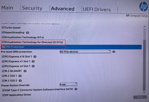 เปลี่ยนค่า DMA Protection จาก “Disabled/AUTO” เป็น “Enabled”