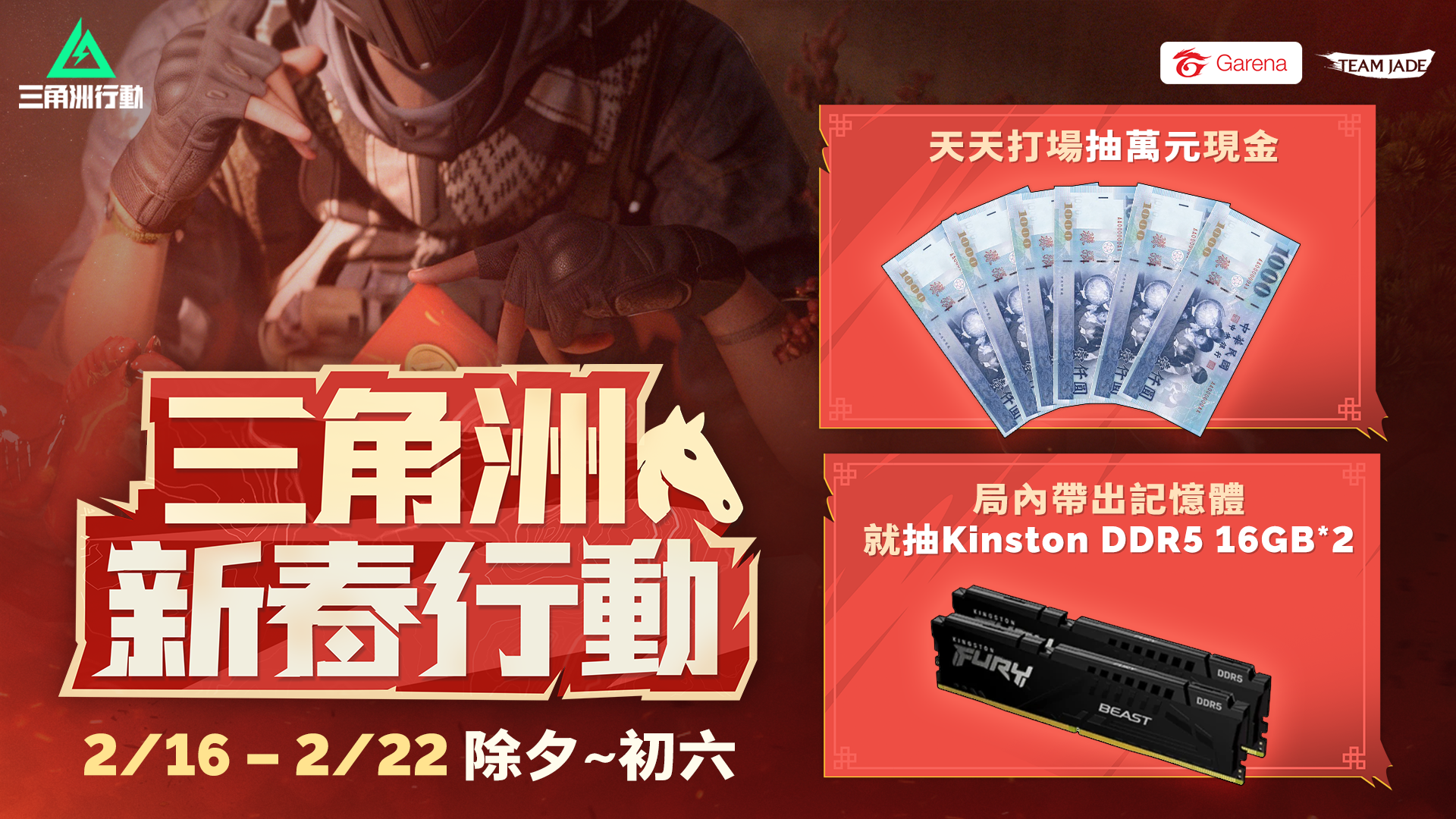 - 活動規則:新春加碼送!活動期間只要登入遊戲並進行任意模式,就有機會抽到新台幣 10,000 元現金紅包,共抽出 7 包。另外只要於指定活動貼文底下留言帶出記憶體並成功撤離的截圖,再加碼抽 DDR5 記憶體 16GB×2。